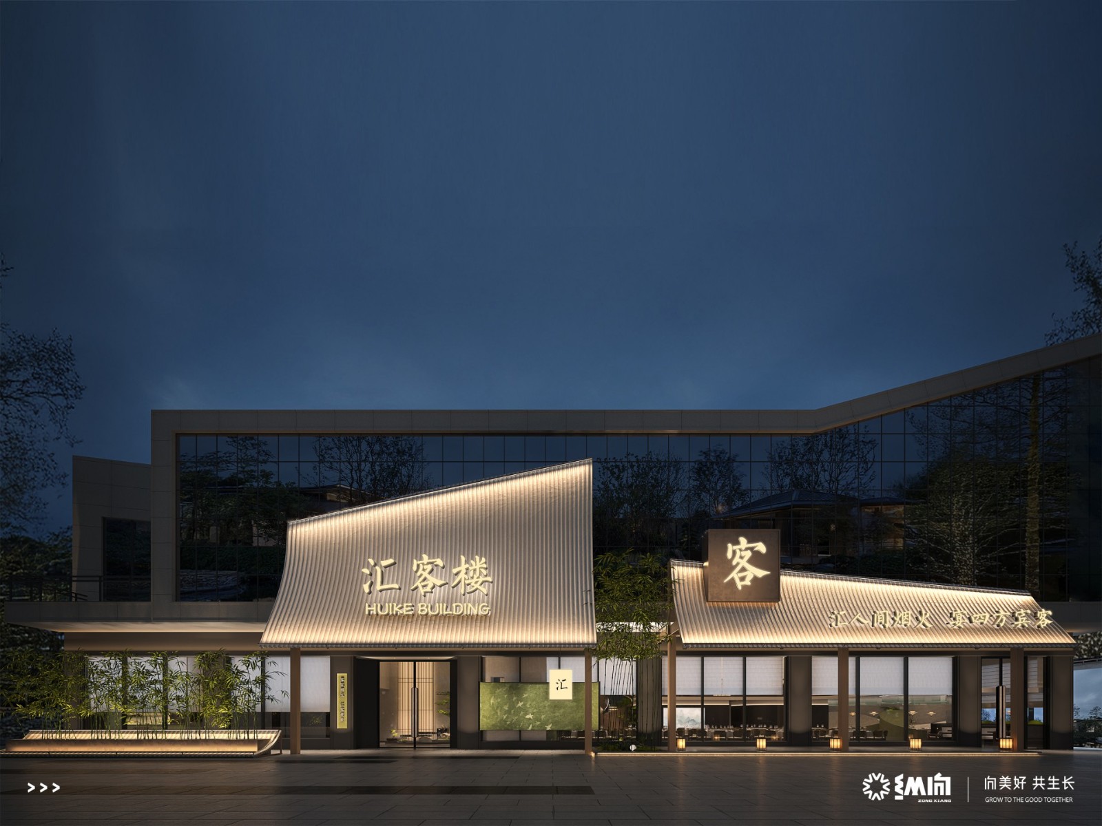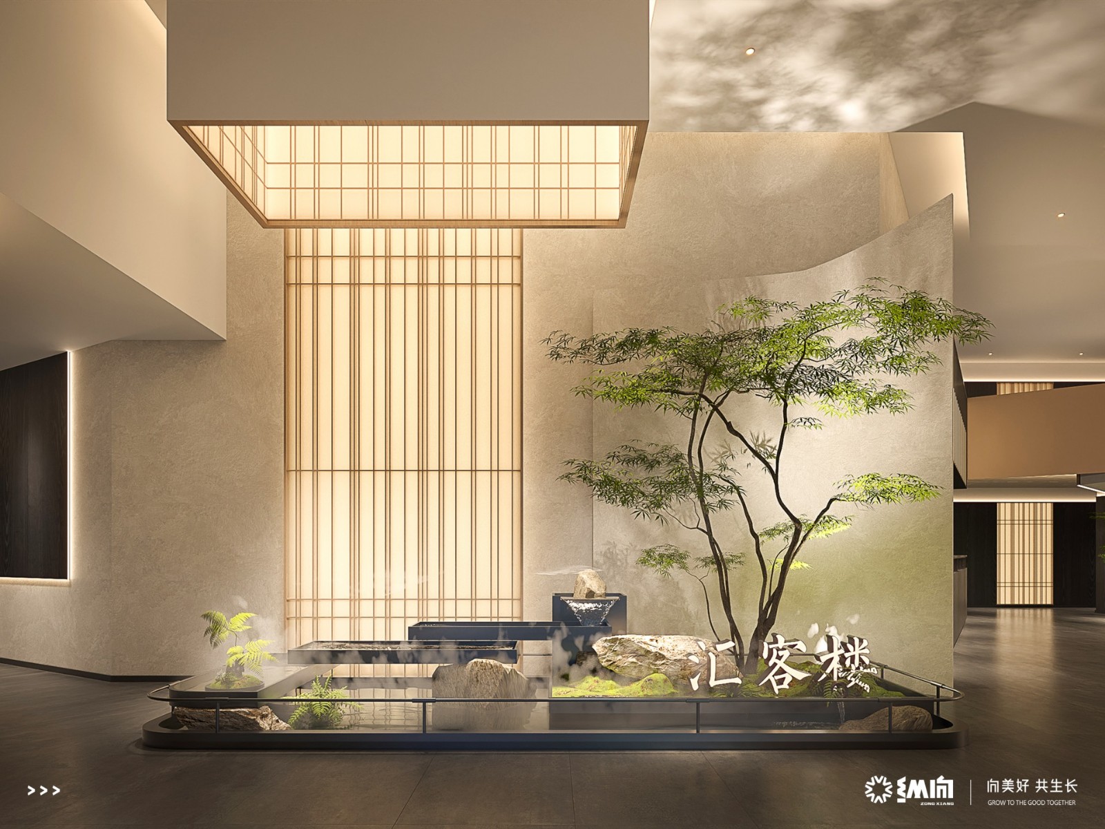 项目内容介绍:由售楼中心改造,因地制宜,发挥原有场地最大优势,打造独属汇客楼的空间场域,室内外不要被切割、模糊室内外的边界,室内的布局和思维逻辑与庭院融合,雨披是室内生活的延伸…